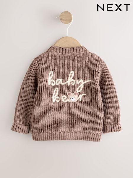 Brown Baby Bear Knitted Embroidered Baby Cardigan