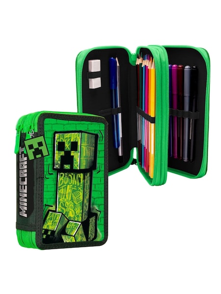 Peers Hardy Green Minecraft Disney Double Zipper Filled Pencil Case