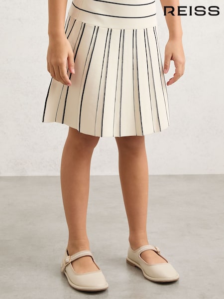Reiss Ivory/Navy Alice Knitted Stripe Pleated Skirt
