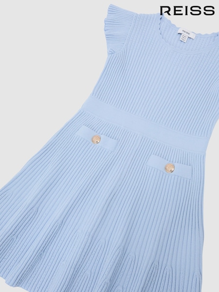 Reiss Pale Blue Miriam Pointelle-Knit Ribbed Dress