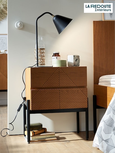 La Redoute Intérieurs Walnut Larsen Vintage Walnut 2-Drawer Bedside Table