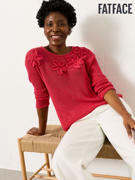 FatFace Raspberry Pink Floral Crochet Jumper