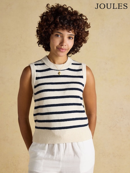 Joules Holly Cream & Navy Knitted Crew Neck Vest