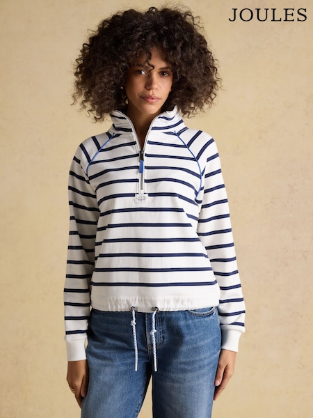 Joules Cream & Navy Stripe Quarter Zip Cotton Sweatshirt