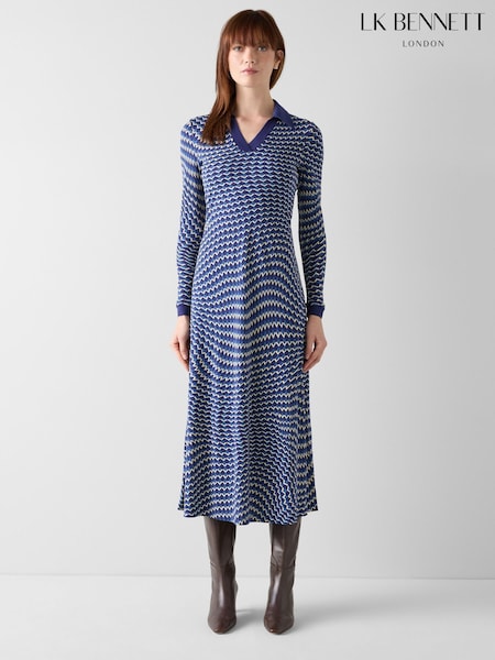 LK Bennett Navy Blue Brigitte Jersey Swirl Print Dress