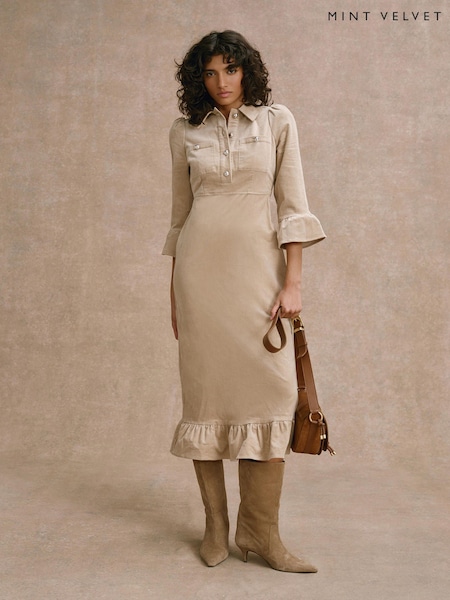 Mint Velvet Natural Corduroy Midi Dress