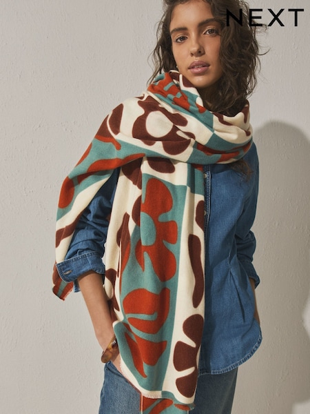 Cream/Red Floral Print Lightweight Scarf