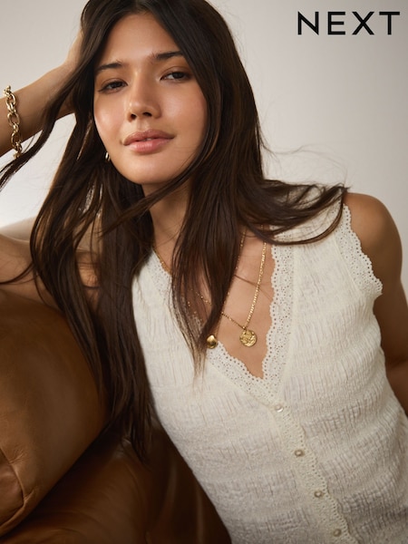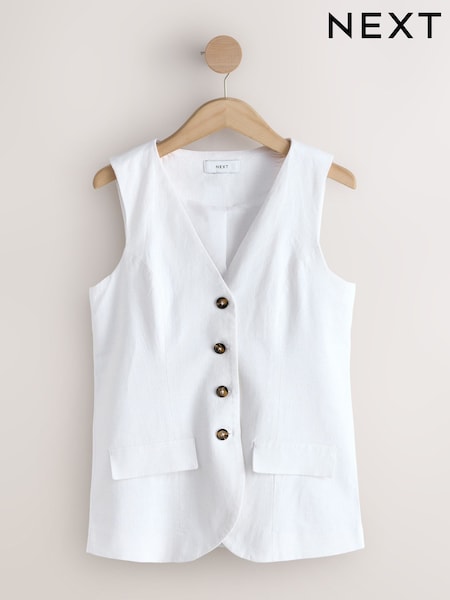 Ecru Sleeveless V-Neck Textured Waistcoat