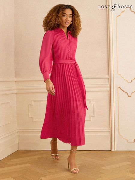 Love & Roses Pink Pleated Detail Midi Dress