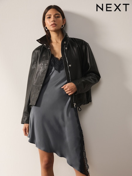 Grey Lace Trim Strappy Asymmetrical Cami Mini Dress