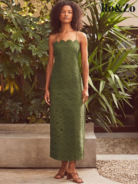 Ro&Zo Green Petite Broderie Tie Shoulder Dress