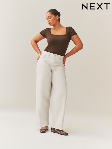 Stone Boyfriend Hourglass Wide Leg Mid Rise Turn Up Jeans