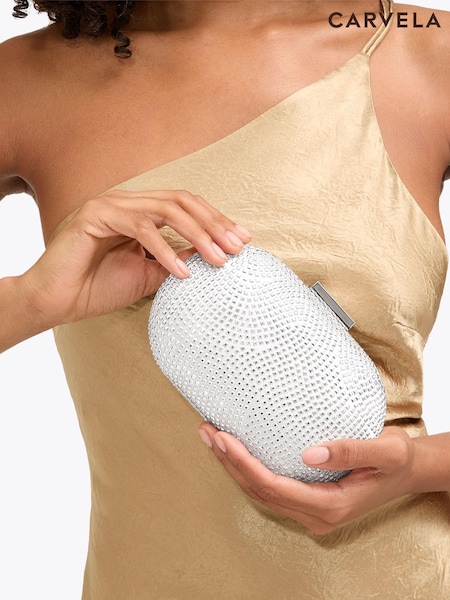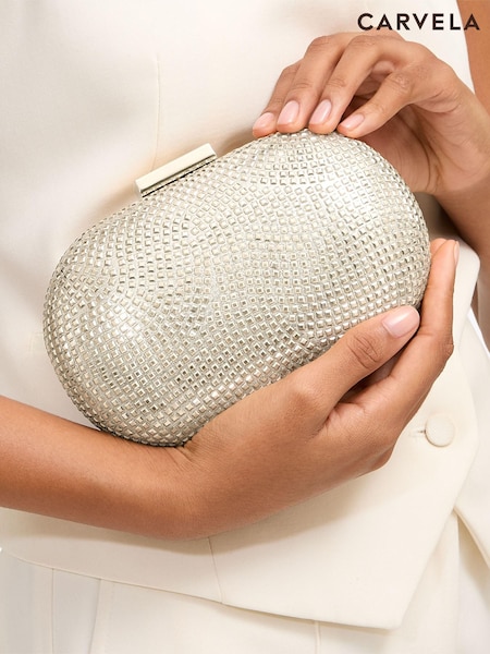 Carvela Silver Pietra Hard Clutch Bag