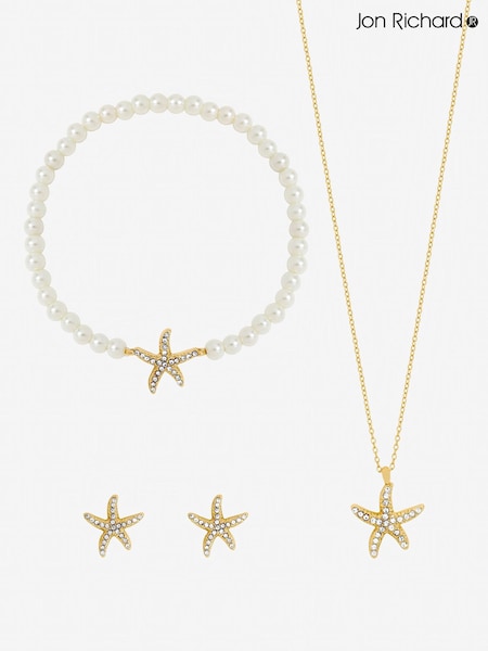 Jon Richard Gold Tone Pearl Starfish Trio Set Gift Box