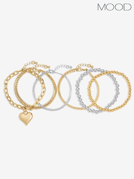 Mood Metallic Two Tone Heart Bracelets Pack of 4