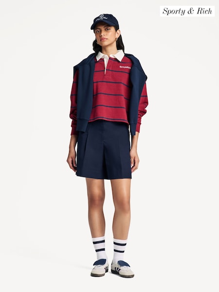 Sporty & Rich Red Serif Logo Rugby Polo Shirt