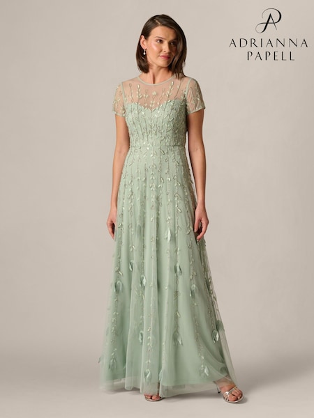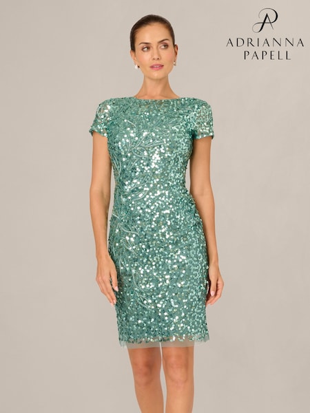Adrianna Papell Green Bead Mesh Sheath Dress