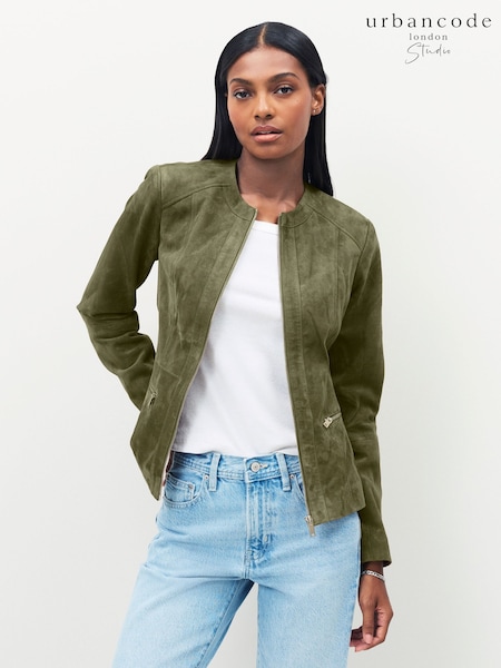 Urban Code Green Collarless Suede Jacket
