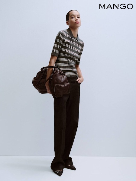 Mango Blue Button Detail High Neck Long Sleeve Jumper