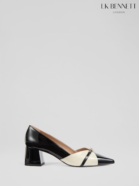 LK Bennett Black Heather Patent Motif Courts Shoes