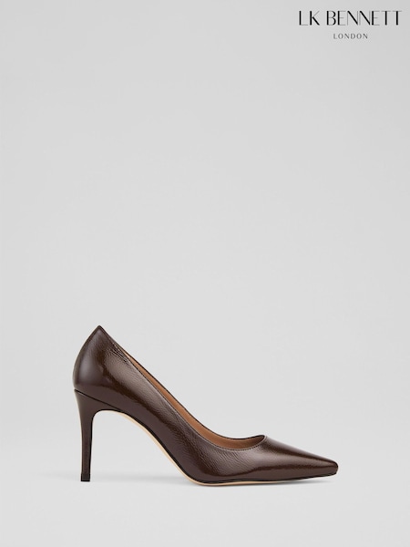 LK Bennett Brown New Floret Chocolate Patent Pointed Toe Courts