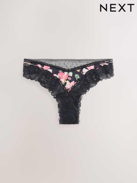 Black Floral Print & Lace Extra High Leg Briefs