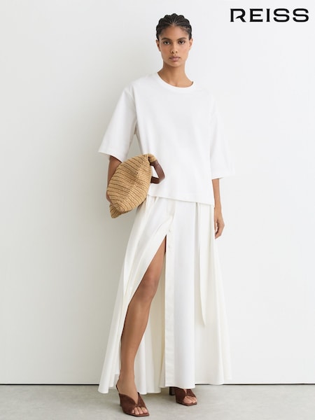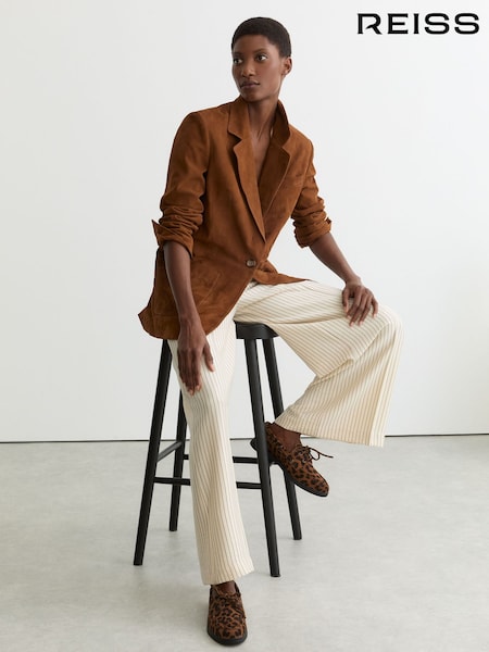 Reiss Camel Margeaux Petite Wide-Leg Tailored Trousers