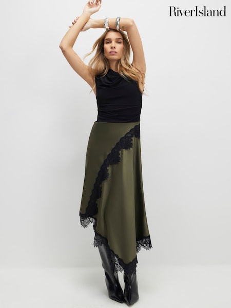 River Island Green Lace Hybrid Drape Midi Dress
