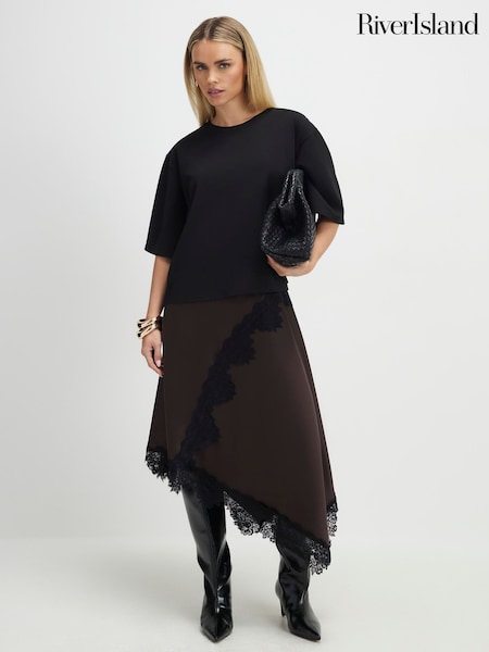 River Island Brown Petite Short Sleeve Lace Hybrid Maxi Dress