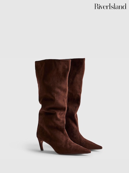River Island Brown High Leg Heeled Boots