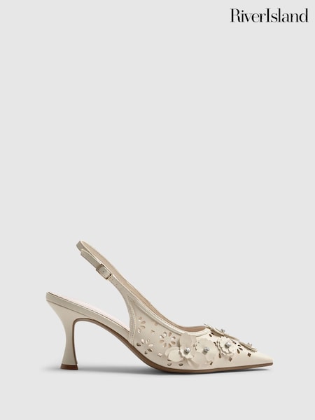 River Island Cream 3D Flower Heeled Court Shoes
