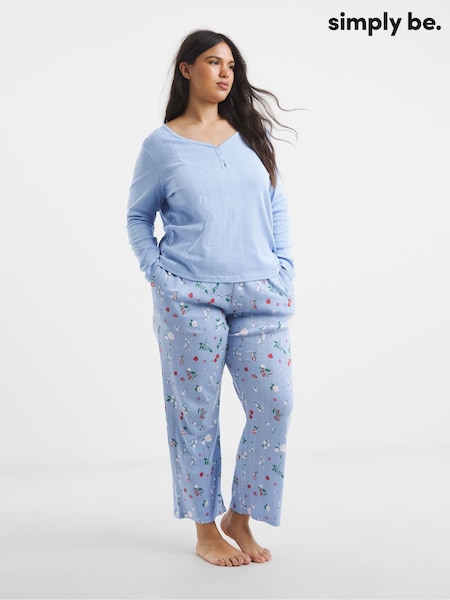 Simply Be Blue Pointelle Henley Top Pyjamas Set