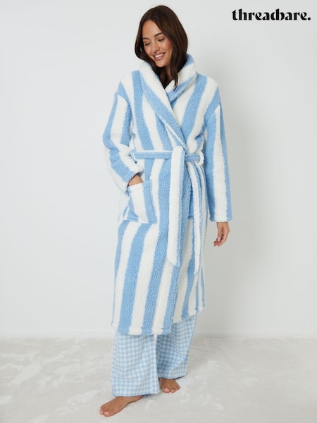 Threadbare Blue Stripe Borg Dressing Gown