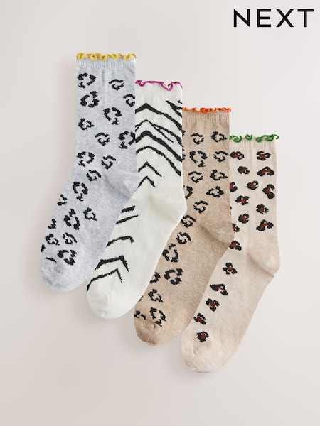 Animal Print Lettuce Welt Socks 4 Pack
