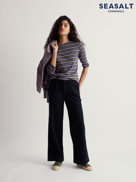 Seasalt Cornwall Purple Sailor 3/4 Sleeve Cotton Top