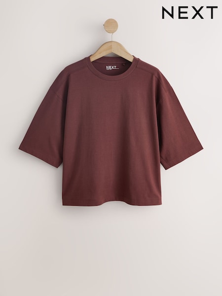 Chocolate Brown Relaxed Boxy Elbow Length Crew Neck T-Shirt