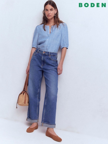 Boden Blue Leah Short Sleeve Linen Blouse