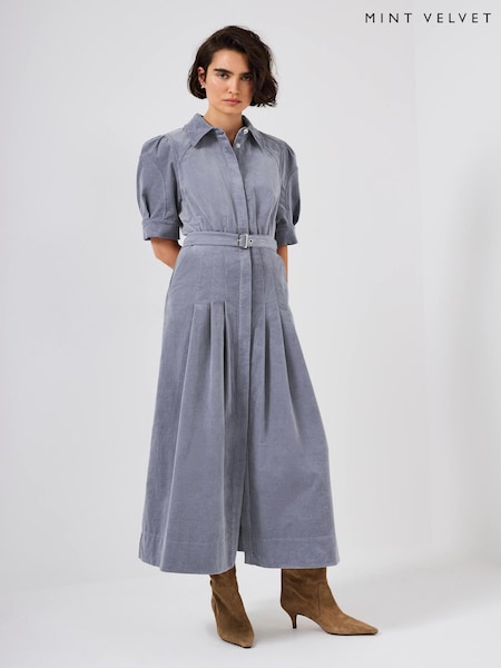 Mint Velvet Blue Corduroy Belted Midi Dress