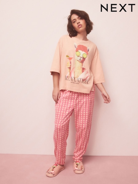 Pink Lama Graphic Short Sleeve Pyjamas