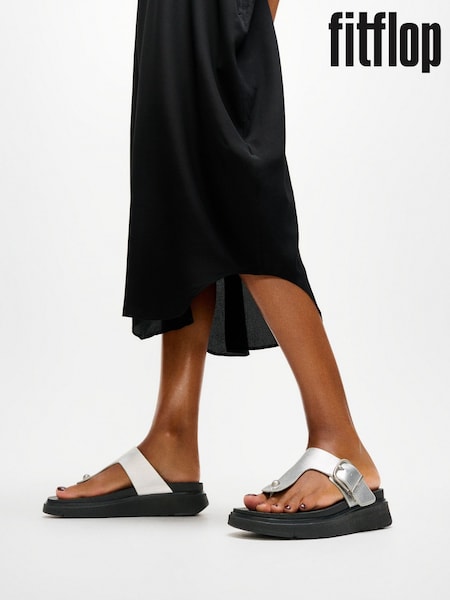 FitFlop Silver Gen FF Buckle Tumbled Leather Toe Post Sandals