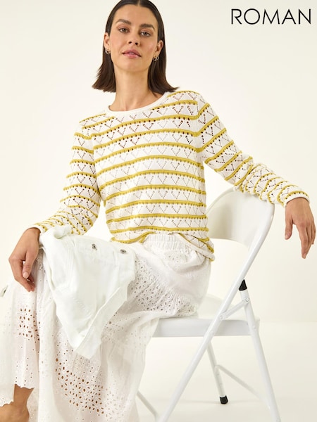 Roman White Ribbed V-Neck Cable Knit Jumper