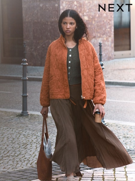 Rust Brown Embroidered Quilted Jacket