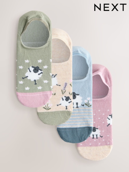 Multi Sheep Print Invisible Trainer Socks 4 Pack