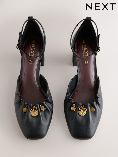 Black Forever Comfort® Leather Two Part Coin Block Heels