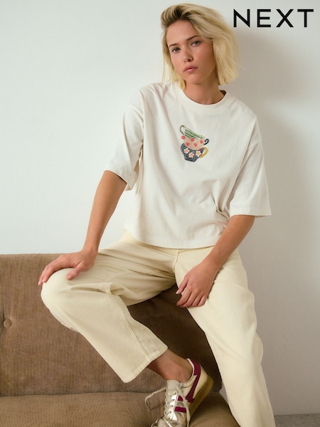 Lemon Yellow Stripe Embellished Teacup Short Sleeve Embellished T-Shirt