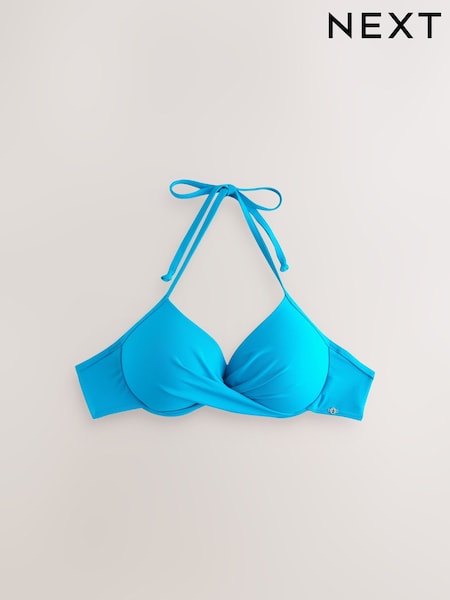Aqua Blue Padded Wired Plunge Bikini Top