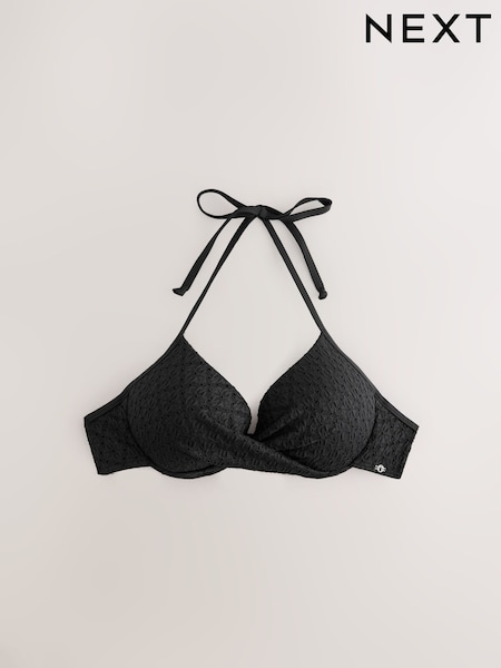 Black Broderie Padded Wired Plunge Bikini Top