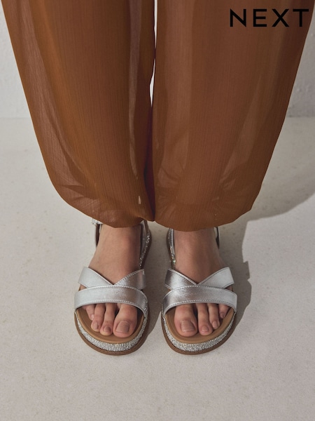 Silver Metallic Forever Comfort® Cross Strap Sandals
