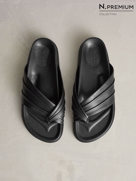 Black Leather N. Premium Toe Thong Footbed Sandals