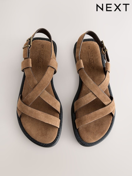 Monsoon Brown Ivy Toe Strap Crossover Suede Sandals
